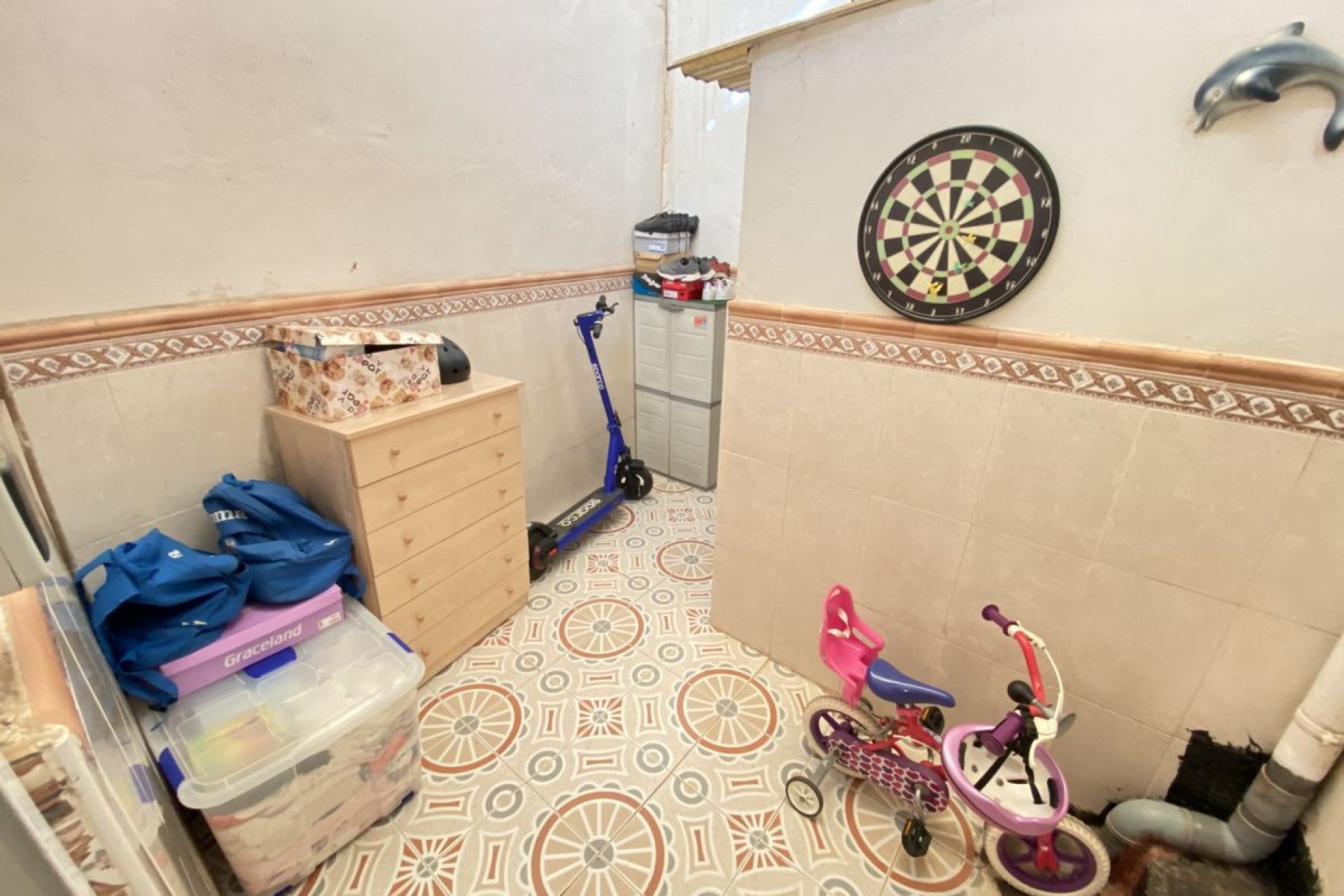 Amplia casa adosada de tres dormitorios en una sola planta en la excelente ubicación de Los Palacios, Formentera del Segura en la Costa Blanca Sur. Al ingresar a la propiedad, tiene un gran salón comedor espacioso con chimenea, el pasillo con estufa de pellets conduce a tres dormitorios dobles, además de un estudio que podría usarse como dormitorio. Cocina separada, baño familiar y baño en suite del dormitorio principal, esta propiedad tiene un tamaño de construcción de 115 m2. Desde el estudio tiene acceso interno al trastero privado subterráneo y garaje privado de 63 m2 con baño propio. Tiene escaleras de caracol internas desde el patio trasero hasta el solarium privado con área de barbacoa de ladrillo y espacio para tomar el sol.