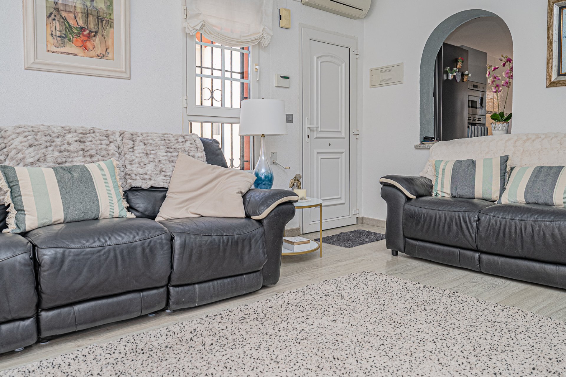 Impresionante villa en Urbanización Montilla, Playa Flamenca. Una oportunidad única para una casa como esta en el mercado. Esta soleada villa independiente ofrece un amplio salón con grandes ventanales que dan a la terraza, el jardín y la piscina, una cocina semi-independiente renovada con lujosos armarios altos y bajos y mucho espacio de almacenamiento/encimera, ofreciendo 3 espaciosos dormitorios, con el dormitorio principal con acceso a un gran solárium privado de 29 m², y 2 baños con ducha modernizados. Los extras incluyen un garaje cerrado y un trastero. La villa está impecable en todas partes con mucha luz debido a su orientación suroeste y permite sol durante todo el día. Se vende completamente amueblada con extras que incluyen trastero, aire acondicionado, electrodomésticos, armarios empotrados, ventiladores de techo, toldos y mucho más. Estupendo espacio exterior con un gran patio con jardín, terraza y piscina privada. La codiciada comunidad también ofrece una piscina comunitaria y jardines para los residentes si es necesario. Ubicado en una de las ubicaciones privilegiadas de Orihuela Costa en Residential Montilla, a poca distancia del centro comercial Playa Flamenca, servicios locales, supermercados, restaurantes de renombre y mucho más, además de poco más de 15 minutos a pie de la playa Playa Flamenca (1,4 km) Contáctenos hoy para ver esta hermosa casa familiar en una ubicación prestigiosa.