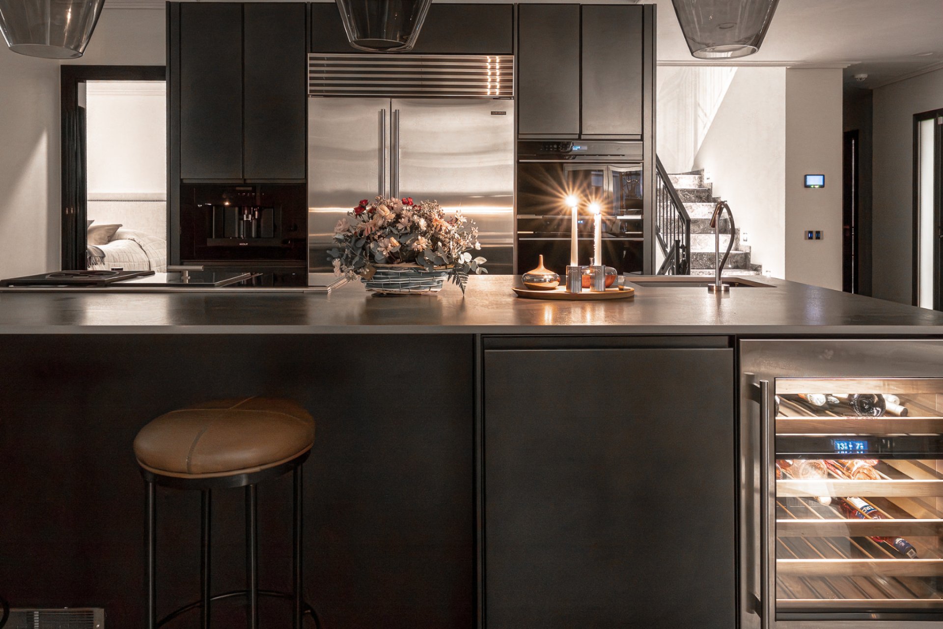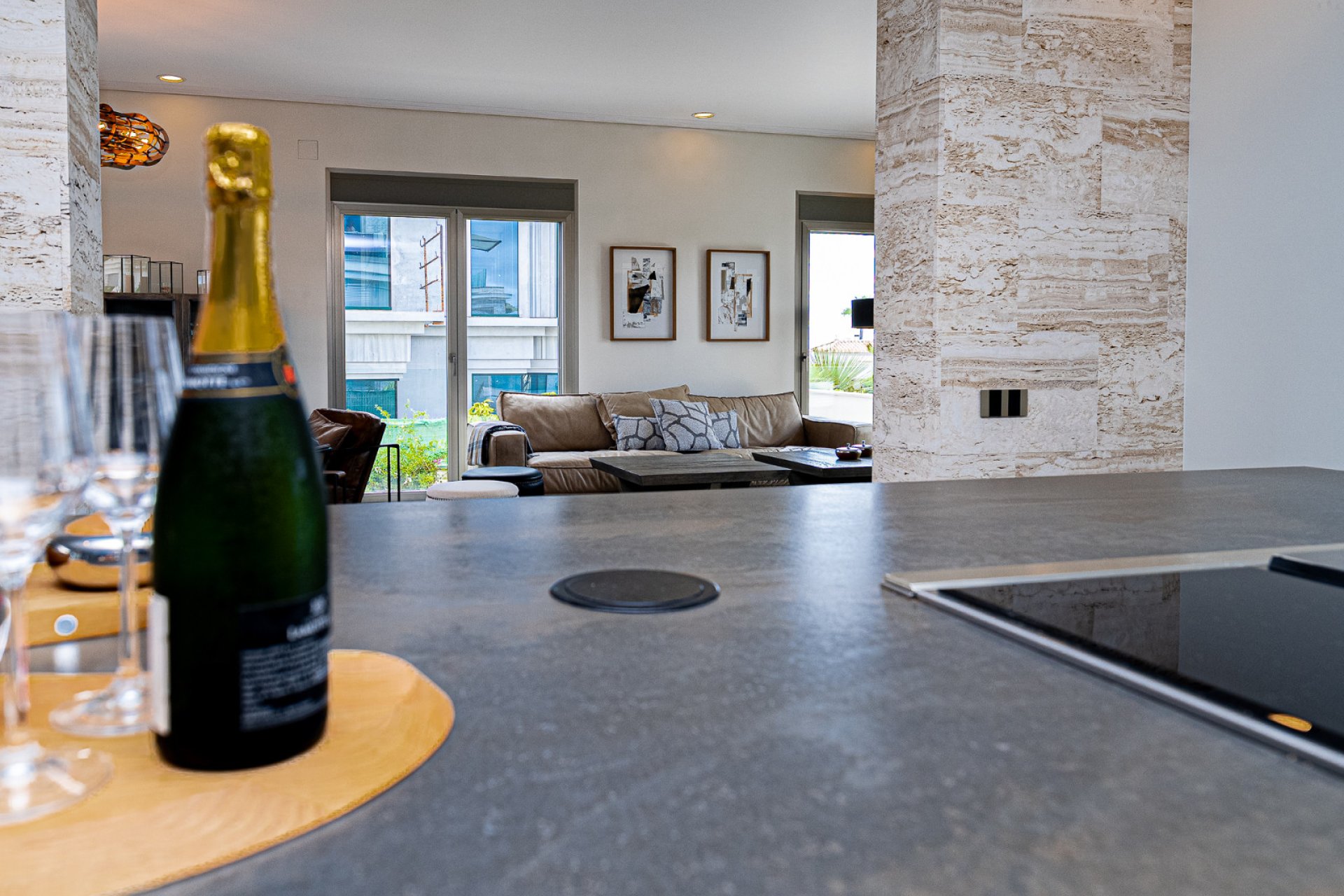 The villa is fully furnished with curated, high-end pieces and showcases designer lighting throughout. It also features a state-of-the-art multi-zone audio system from Mezzanine Audio, with high-end speakers integrated throughout both the interior and exterior. The garden includes an outdoor sound system by Sonance, while each terrace features built-in speakers. Inside, the living room, kitchen, master bedroom, gym, and a guest bedroom are equipped with "invisible" ceiling speakers—seamlessly blended into the architecture. All zones are centrally managed via a Sonos intelligent control system, allowing intuitive operation through app-based domotic technology.