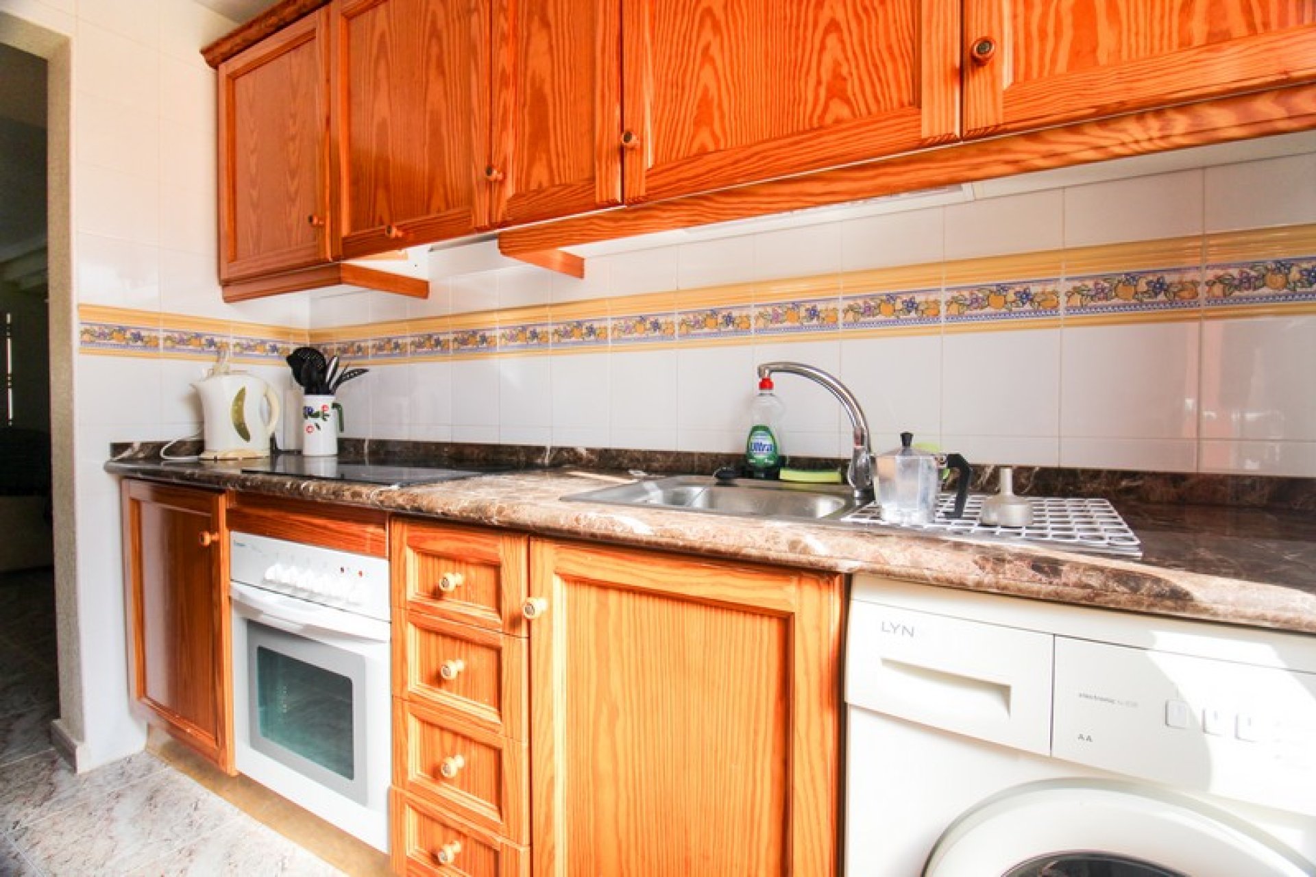 Are you in the market for what could arguably be the perfect holiday home? This 3 bedroom 2 bathroom townhouse in Urb. Lo Crispin, Algorfa, could well be what you’re looking for. Set over three floors with open plan living/dining area and separate kitchen , the set up is one bedroom and small bathroom downstairs, and two more bedrooms and a large bathroom upstairs. On the very top floor is the solarium from which the views are quite delightful. The communal swimming pool is about 15 seconds away at the rear of the property and within the gated community to which this townhouse belongs. This place is in very good condition indeed. It has been used as a holiday home, so it currently lacks the homely feel but it is a property which could easily be a permanent residence.