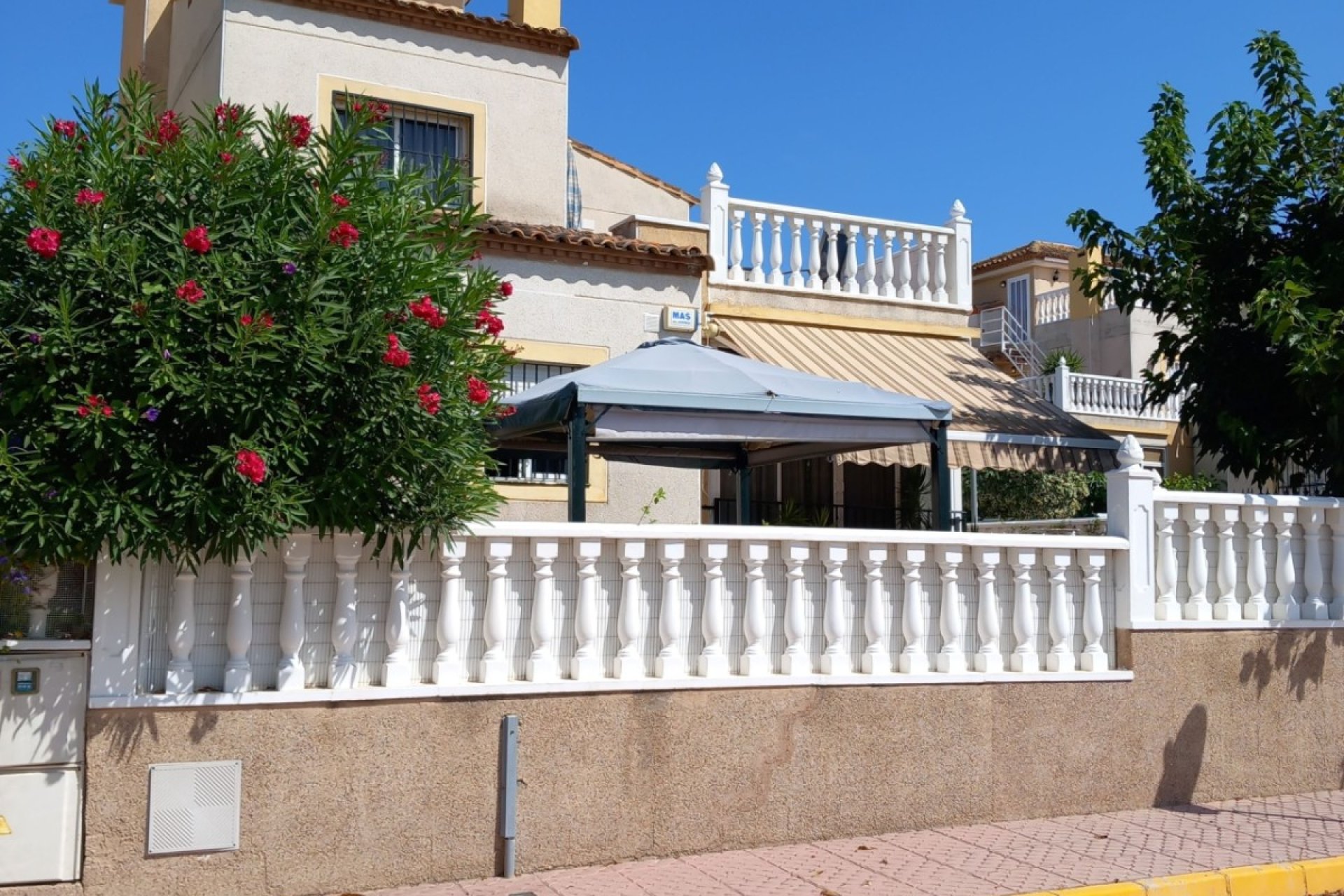 A marble staircase leads to the first floor and 2 further double bedrooms with built in wardrobes another family bathroom and south facing solarium from which you have great views of the surrounding orange groves and the mountains beyond. From the solarium is an external staircase leading to another room currently used for storage but could be used as an office or an extra guest bedroom